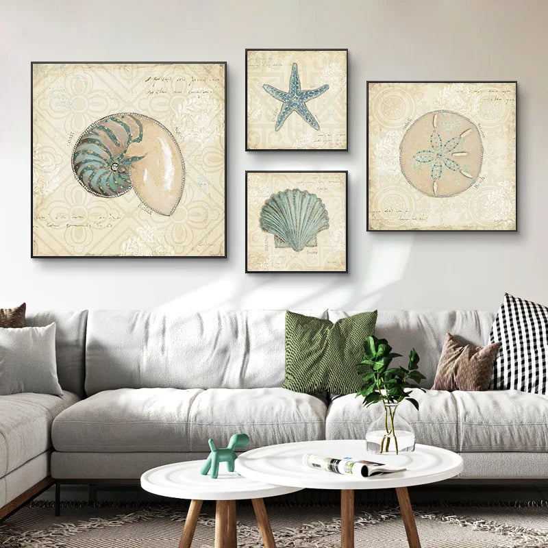 French Vintage Sea Life Wall Art Antique Inspired Wall Art Sea Shell Fish Star Pastel Posters