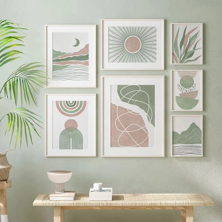 Don’t miss out on some of our favourite designs, such as the Abstract Sage Green Geometric Boho Wall Art, Bohemian Sun Leaf Abstract Pastel Wall Art, and Boho Abstract Sun Leaves Aesthetic Wall Art.