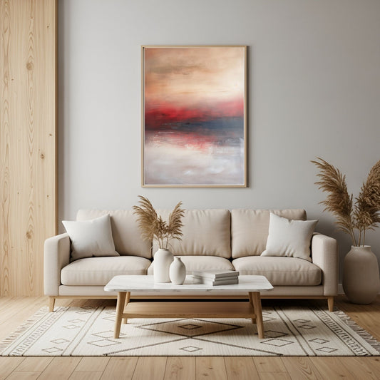 Abstract Red Horizon Framed Wall Art Canvas Print - Modern Landscape Artwork
