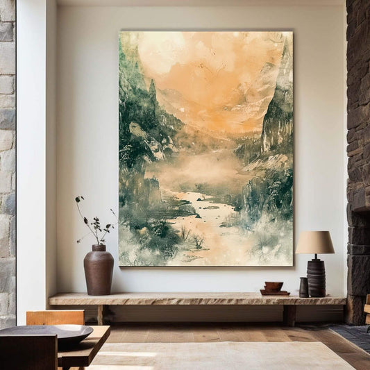 Golden Valley Landscape Framed Wall Art Canvas Print - Atmospheric Nature Art
