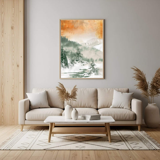 Misty Forest Mountain Framed Wall Art Canvas Print - Serene Nature Landscape Artwork