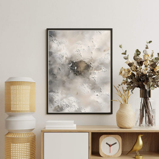 Neutral Abstract Textured Framed Wall Art Canvas Print - Modern Beige Grey Artwork