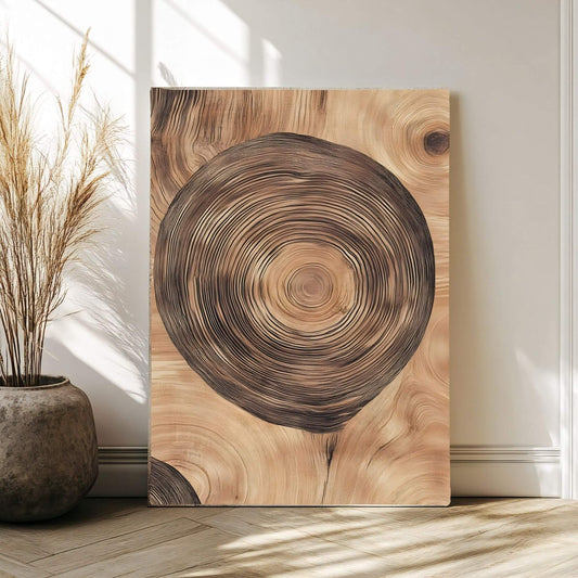 Tree Ring Wood Texture Framed Wall Art Canvas Print - Natural Rustic Wood Slice Artwork