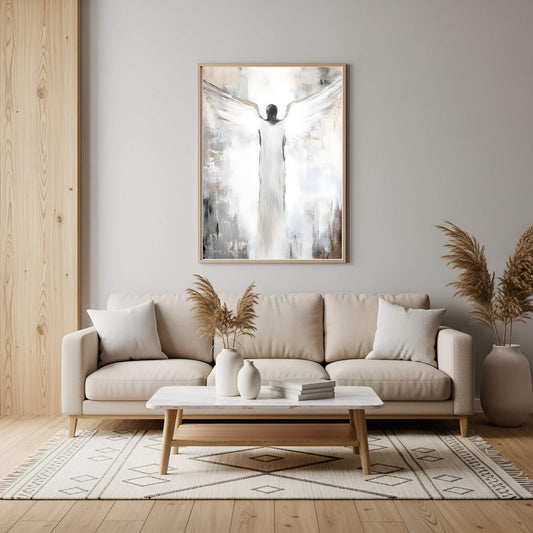 Abstract Angel Figure Framed Wall Art Canvas Print - Modern Spiritual Neutral Painting