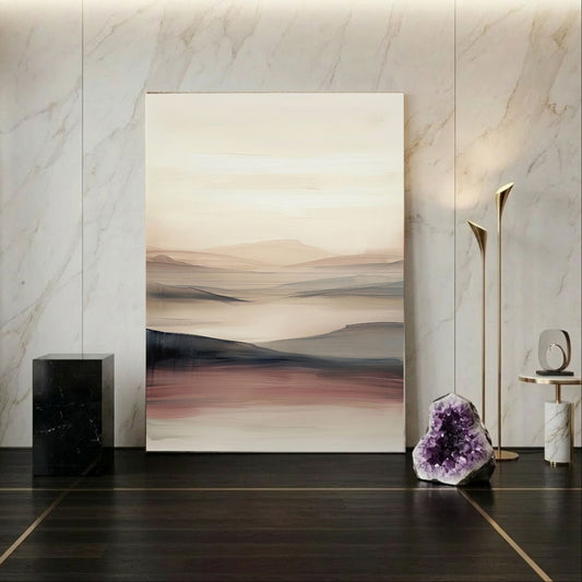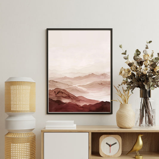 Soft Desert Mountain Landscape Framed Wall Art Canvas Print - Minimalist Nature Artwork