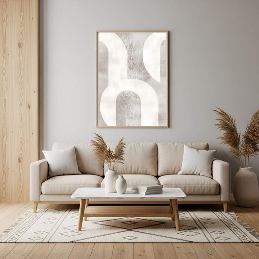 Neutral Abstract Geometric Framed Wall Art Canvas Print - Minimalist Modern Shape Artwork