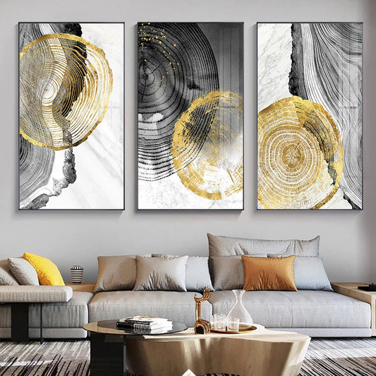 Black Gray Golden Abstract Tree Rings Wall Art Canvas Prints For Living Room Dining Room Scandinavian Interiors