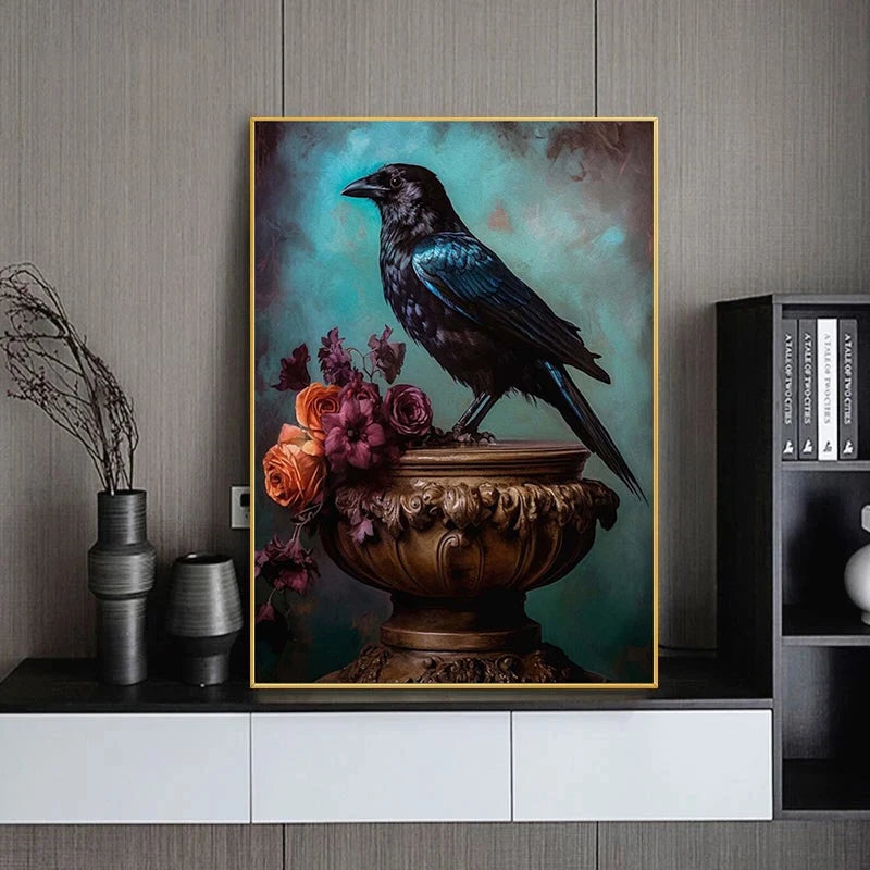 Dark Academia Canvas Prints Black Raven Owl Wall Art Vintage Witchcraft Canvas Wall Art For Moody Living Room Décor