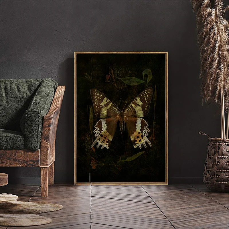 Vintage Inspired Wall Art Butterfly Dark Botanical Floral Wall Art Prints Moody Flowers Wall Décor