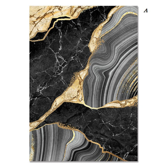 Abstract Black White Golden Marble Canvas Prints | Modern Nordic Style Wall Art For Living Room Luxurious Bedroom Home Office Décor