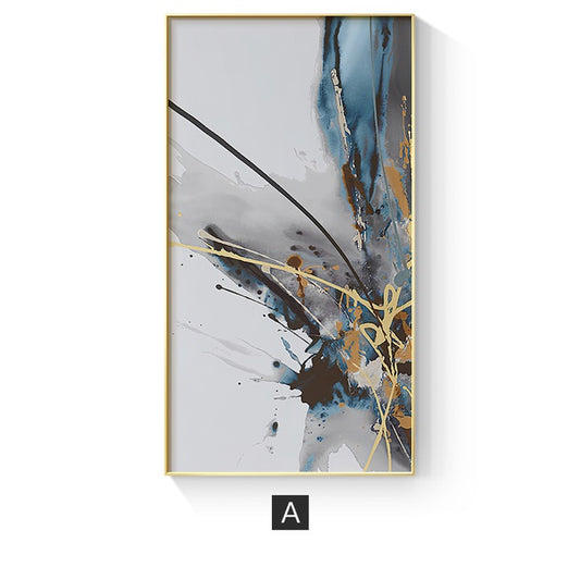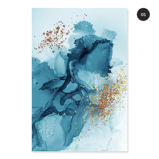 Golden Blue Splash Liquid Abstract Wall Art Fine Art Canvas Prints Modern Pictures For Luxury Living Room Bedroom Office Art Decor