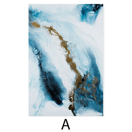 Blue Golden Liquid Marble Wall Art Fine Art Canvas Print Nordic Abstract For Luxury Living Room Bedroom Art Decor