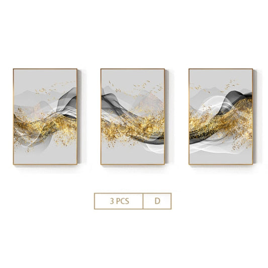 Nordic Modern Geometric Gold Canvas Prints | Minimalist Abstract Large Wall Art For Living Room Bedroom Modern Office Décor