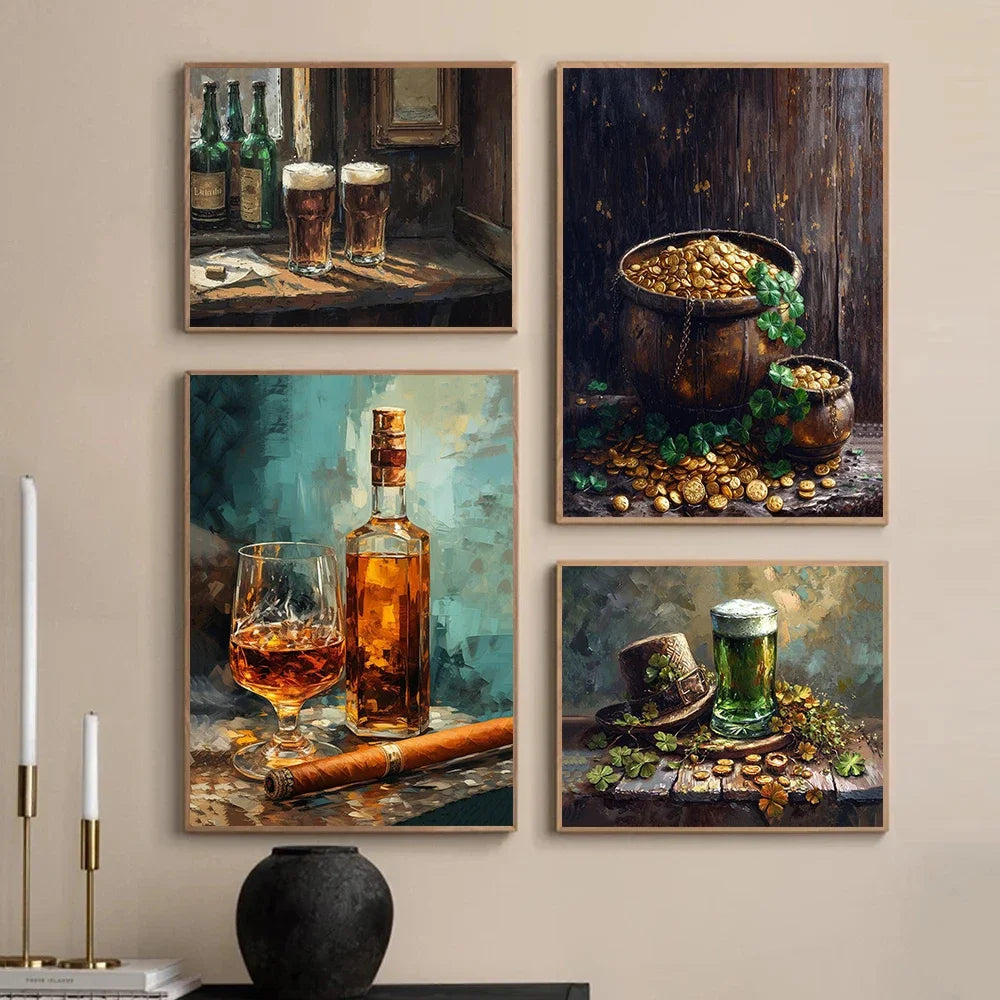 Vintage Whiskey Scotch Cigar Irish Bar Cellar Drinks Wall Art Canvas Prints Saint Patrick Day Funny Cattle Kitchen Wall Art Ideas Drinks Theme Decor