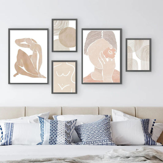 Boho Matisse Dancing Girl Line Art Canvas Prints Abstract Minimalist Wall Art Scandinavian Neutral Color Gallery Wall Art Set Of 5 Posters For Modern Bedroom Wall Decor