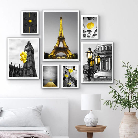 European Landscape Architectural City Canvas Prints Nordic Yellow Scenery Gallery Wall Art Set Of 7 Posters For Modern Living Room Home Decor