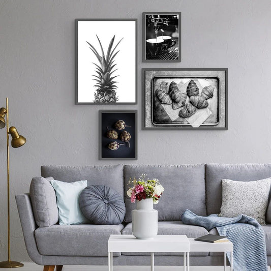 Black White Food Drink Kitchen Canvas Prints Coffee Pineapple Bakeries Gallery Wall Art Set Of 4 Posters For Modern Dining Room Kitchen Coffee Shop Wall Decor