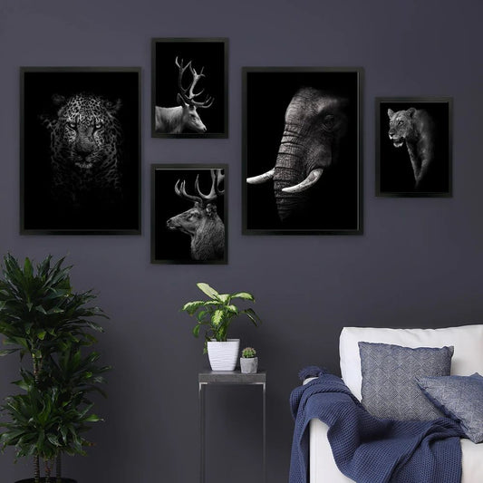 Black and White Animals Canvas Prints Wall Art Lion Elk Jaguar Elephant Wilderness Posters Gallery Wall Art Set Of 5 Posters For Modern Living Room Home Decor