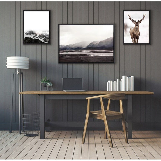 Black And White Scandinavian Winter Woodland Canvas Prints | Nature Deer Silver Birch Forest Wall Art For Living Room Dining Room Décor