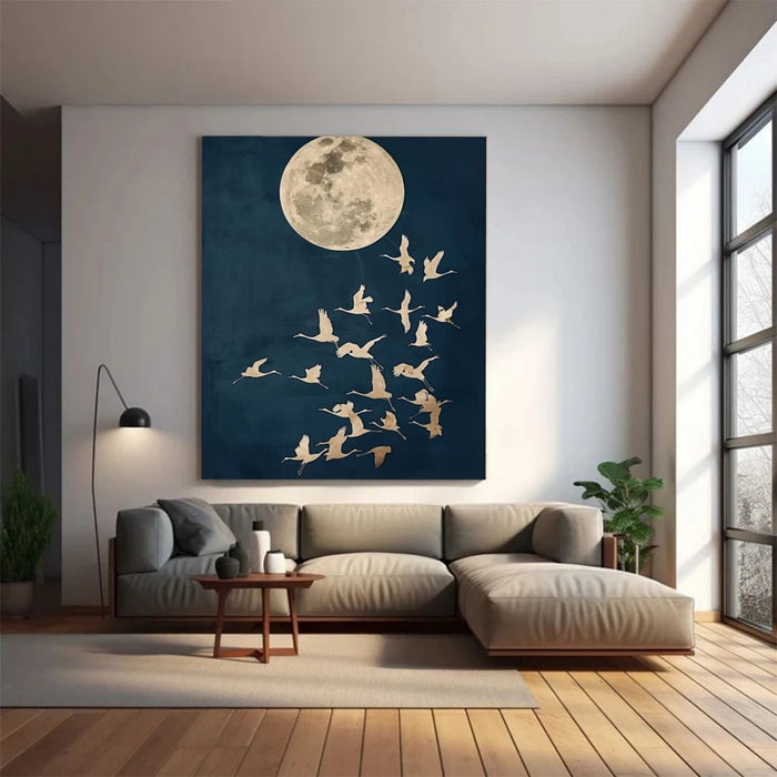 Vintage Beige Golden Crane Wabi Sabi Japanese Wall Art Canvas Print For Modern Living Room Bedroom Wall Decor