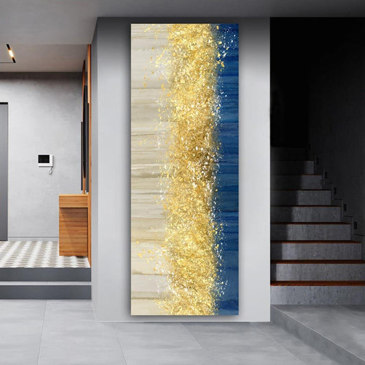 Modern Abstract Blue Golden Grey Canvas Print | Big Nordic Poster Aesthetic Fine Art Wide Format Large Wall Art For Luxury Living Room Bedroom Home Décor