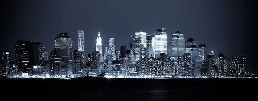 New York Night City Canvas Print | Black and White Poster Modern Pictures Wide Format Wall Art For Living Room Bedroom Office Home Décor