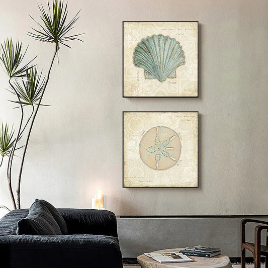 French Vintage Sea Life Wall Art Antique Inspired Wall Art Sea Shell Fish Star Pastel Posters