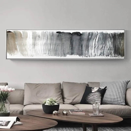 Contemporary Shades Of Gray Canvas Prints | Modern Abstract Wide Format Wall Art For Above The Bed Art