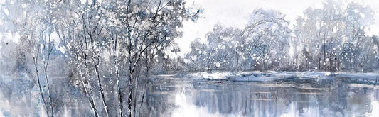 Abstract Winter Blue Landscape Canvas Print | Nature Poster Tree Lake Pictures Wide Format Wall Art For Living Room Above Sofa Home Décor