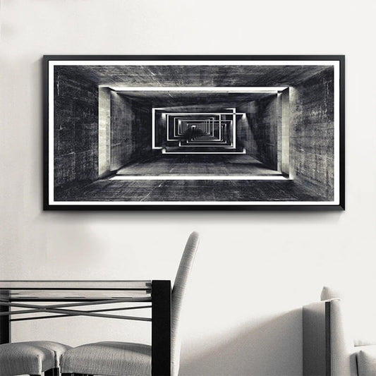 Retro Abstract Geometric Architectural Canvas Prints Black and White Modern Poster For Living Room Home Office Décor