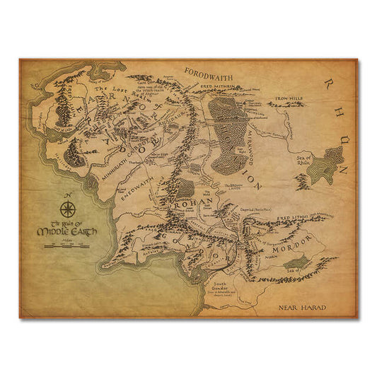 Retro Middle Earth Map Canvas Print | Vintage Wall Art Gondor Poster For Living Room Bedroom Teenage Room Home Décor