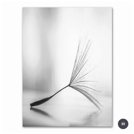 Modern Minimalist Black & White Dandelion Canvas Print | Flower Wall Art For Living Room Dining Room Scandinavian Home Office Art Decor