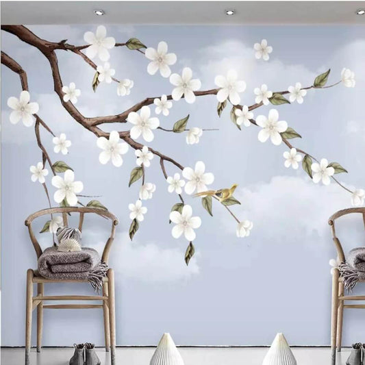 Chinoiserie White Magnolia and Birds Mural Wallpaper (SqM)