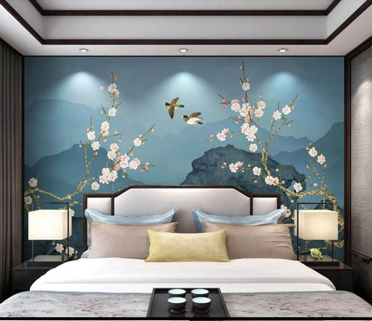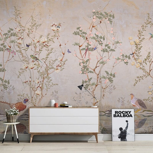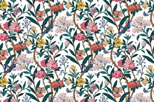 Chinoiserie Pastel Flowers and Birds Mural Wallpaper (SqM)