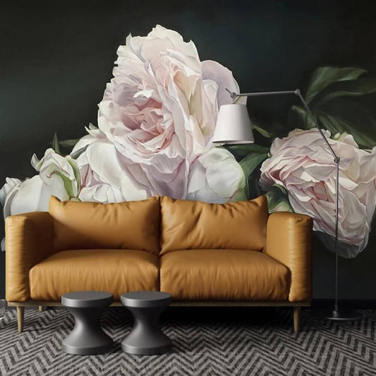 Cream Oversized Roses Dark Mural Wallpaper (SqM)