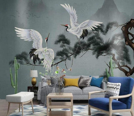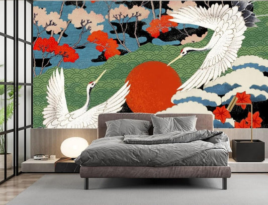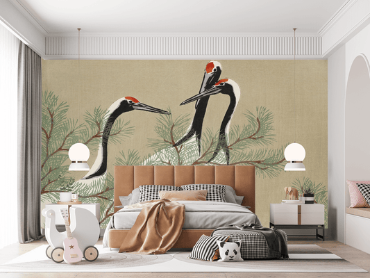 Dancing Cranes Mural Wallpaper (SqM)
