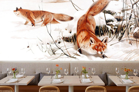 Common Foxes in the Snow Art Mural Wallpaper (SqM)