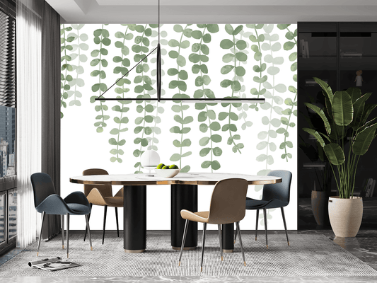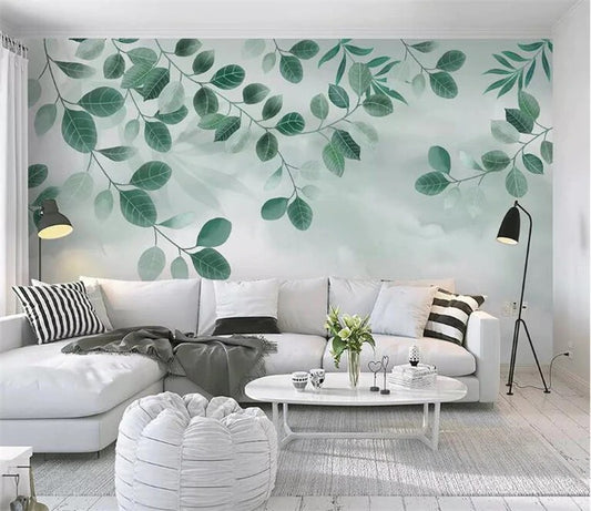 Falling Green Leaves Mural Wallpaper (SqM)