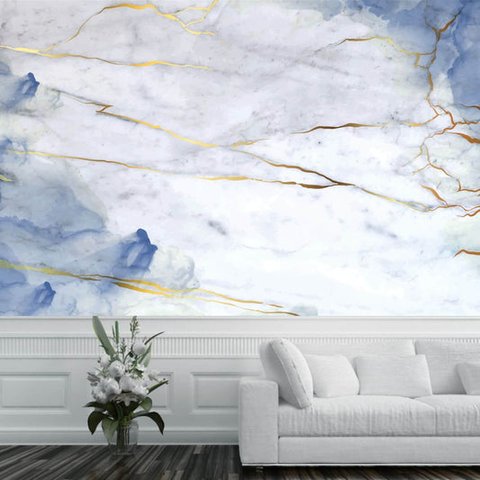 Blue and White Marble Ink Mural Wallpaper (SqM)