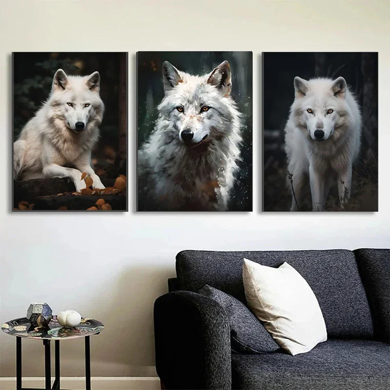 Nordic Style White Wolf Canvas Print Wall Art Wild Animal Forest Poster Nordic Wall Art For Living Room
