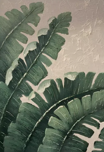 Bring the beauty of nature into your space with this Banana Leaf Hand-Painted Wall Art, a stunning blend of botanical elegance and modern texture. This handcrafted artwork features lush banana leaves rendered in rich, layered textures, creating a sophisticated yet organic focal point for any room.