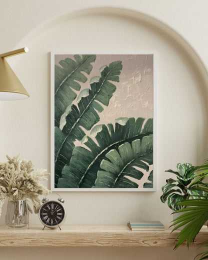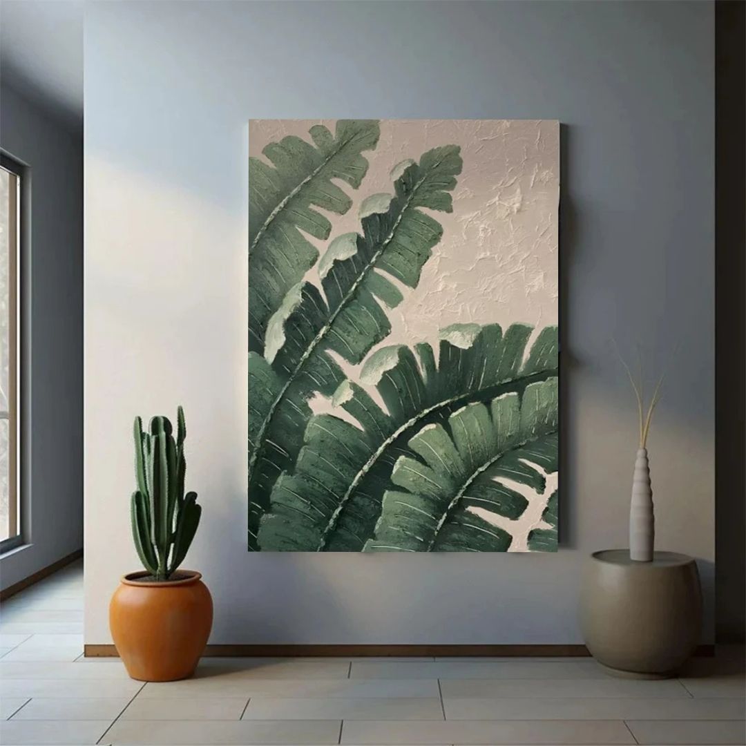 Transform your walls with this contemporary textured banana leaf painting, a perfect fusion of art and nature that elevates any space with modern botanical charm.