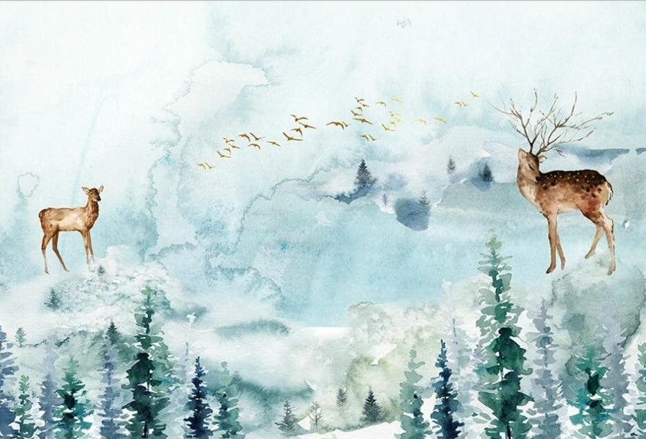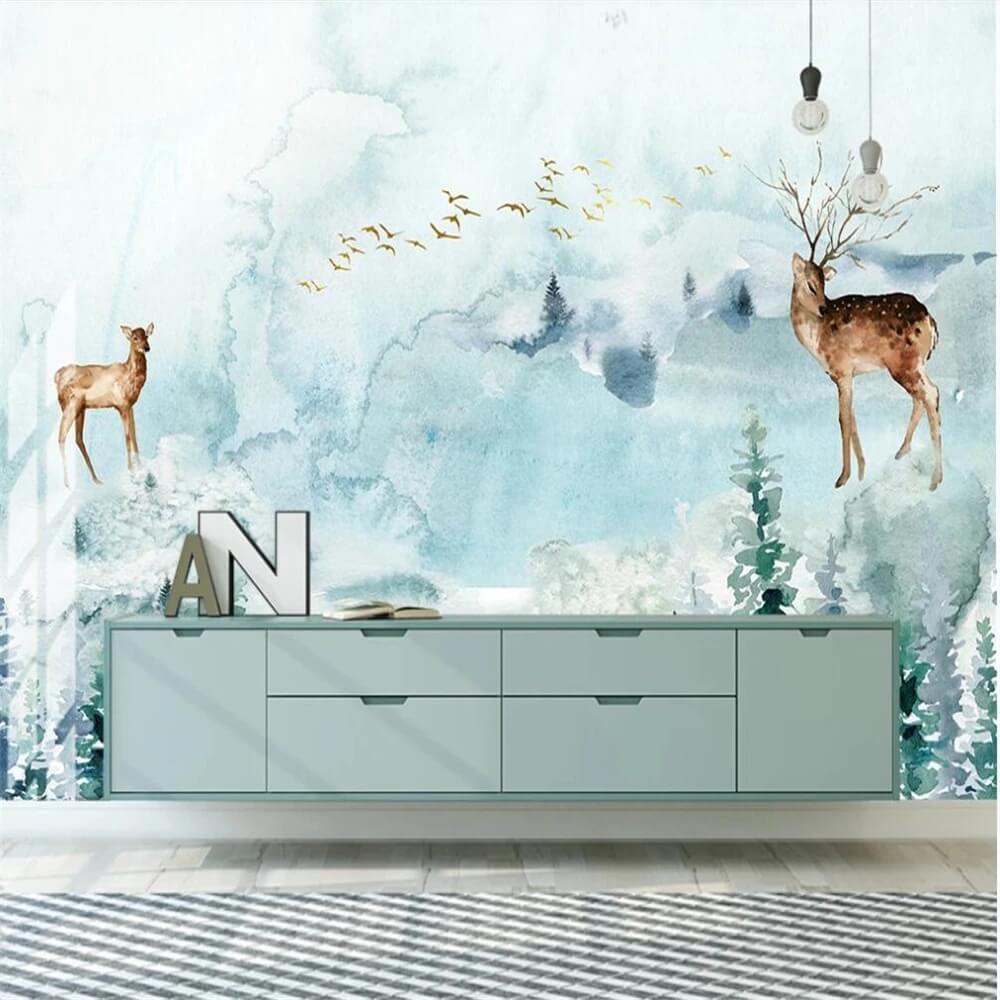 The blue deer landscape is an artfully designed mural that helps you create a wonderland and bring a feel of adventure in your living space. Perfect for creating a joyful space, this mural will look amazing in a living room, bedroom, nursery.