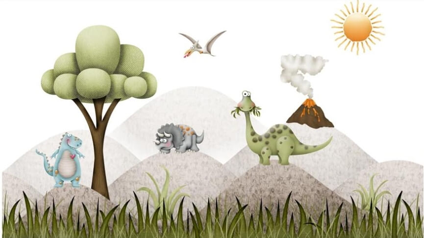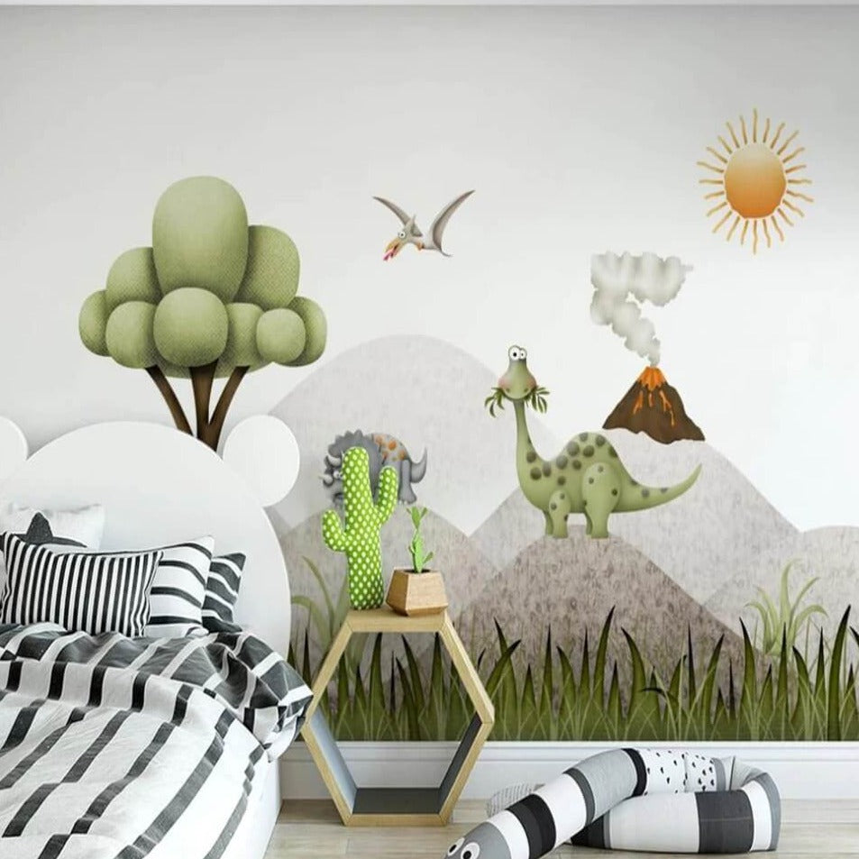 The cartoon dinosaur volcano is an artfully designed mural that helps you create a wonderland and bring a feel of adventure in the living space of your little one. Perfect for creating a joyful space, this mural will look amazing in a living room, bedroom, nursery.