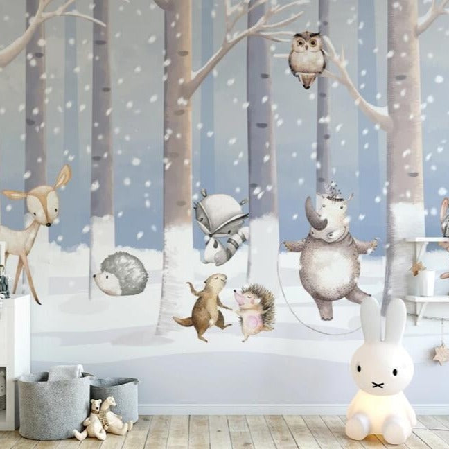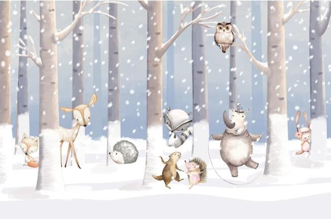 The cartoon snow forest life is an artfully designed mural that helps you create a wonderland and bring a feel of adventure in the living space of your little one. Perfect for creating a joyful space, this mural will look amazing in a living room, bedroom, nursery.