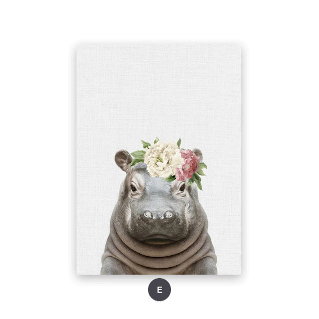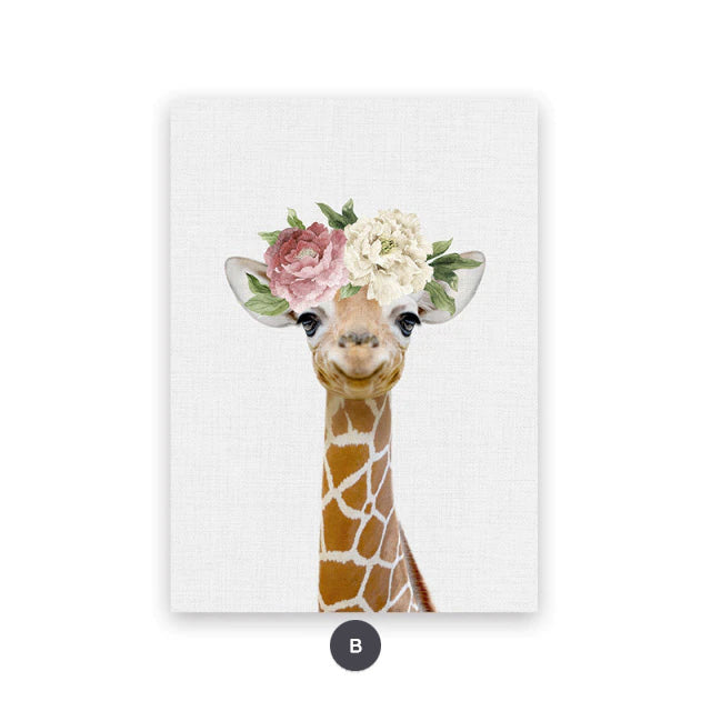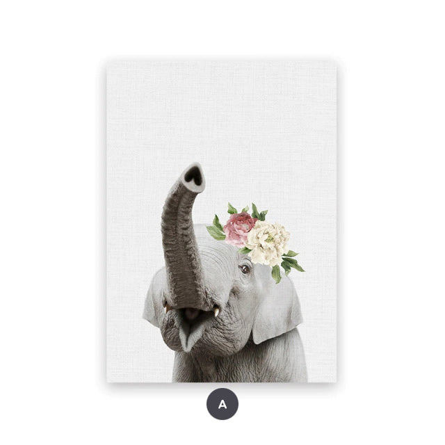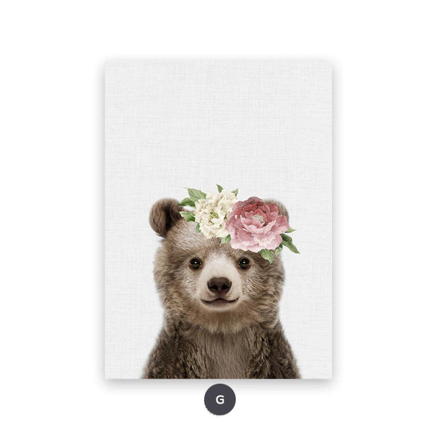 - Nordic Nursery Decor, Baby Animals With Flowers, Posters, Zebra, Giraffe, Elephant, Bear Cub, Bunny Rabbit, Owl Raccoon, Woodland Animals, Modern Pictures For Kid's Room, Minimalist, Colorful, Children's Room Decor.