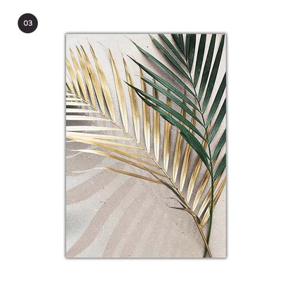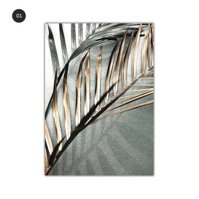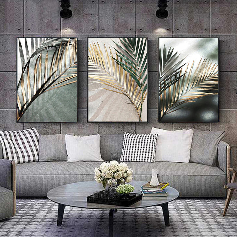 - Botanical Wall Art, Golden Palm, Green Leaves, Canvas Print For Living Room, Minimalist, Nordic Interiors, Dining Room Wall Art, Restaurant Art Décor, Scandinavian Interior Styling.
