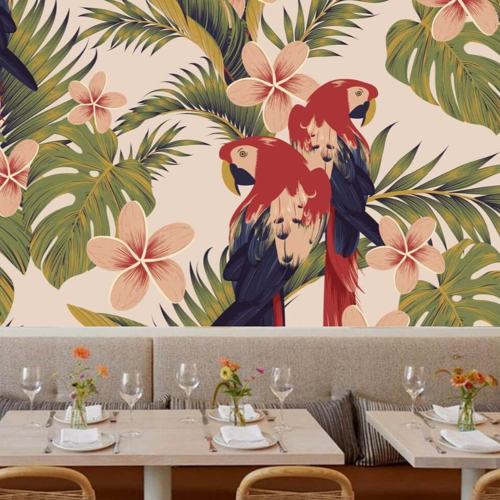 Create a beautiful, elegant space in your home with a stunning tropical leaves mural wallpaper. This botanical wallpaper will add an elegant and sophisticated feel to your home. The charming leaf design will create a romantic look and will make a beautiful accent wall whether in the living room, bedroom or in the dining room.