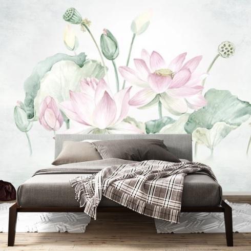 Elevate your space with the Pastel Lotus Romance Wall Mural, a botanical masterpiece that tells a graceful floral story on your walls.