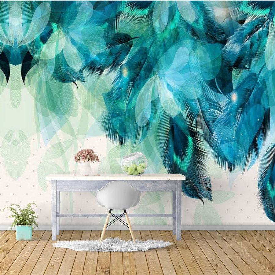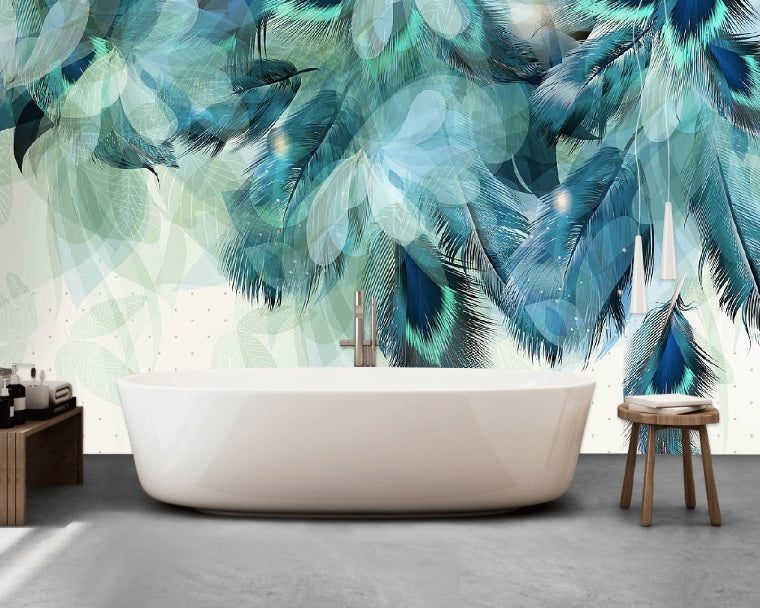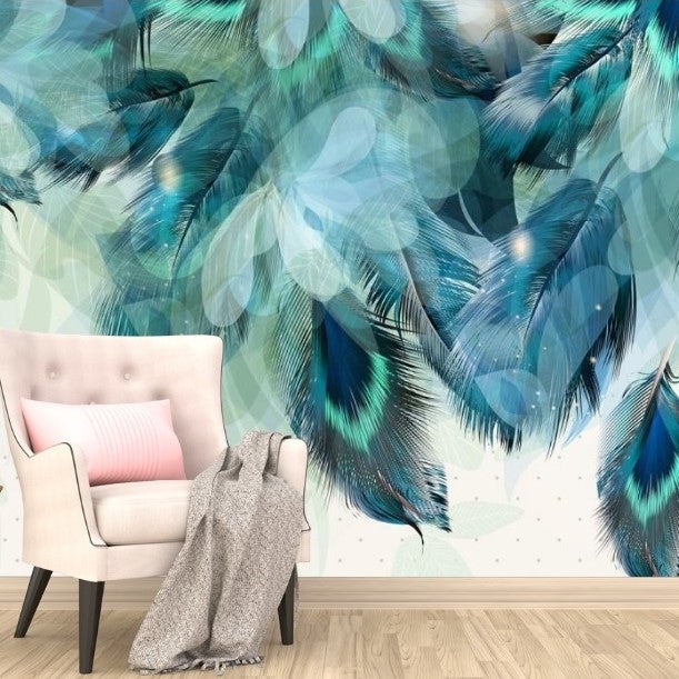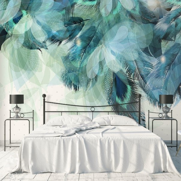 This peacock azure blue feathers mural is a stylish and a guaranteed eye-catcher for every room. The perfect stylized dream catcher featuring stunning peacock feathers falling down the wall. The peacock feathers mural will beautifully transform your living room, bedroom, bathroom, kitchen, lounge room, the nursery space, SPA or relaxation place. Custom made be square meter.